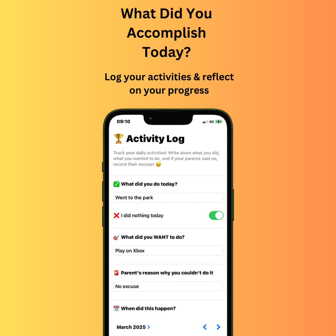 Encourages kids to log their daily activities (Did they go outside? Play with friends?). 🎾🏃♀️