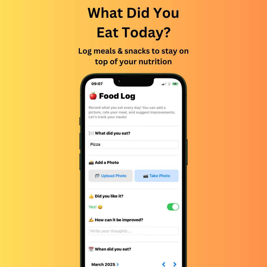 Kids can log their meals and rate them as delicious or gross. 🍕👅